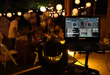En DJ Bonny Eventos, transformamos tus celebraciones en momentos únicos, fusionando música, tecnología y creatividad para ofrecerte eventos personalizados que superan todas tus expectativas.