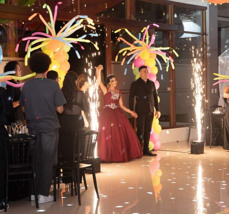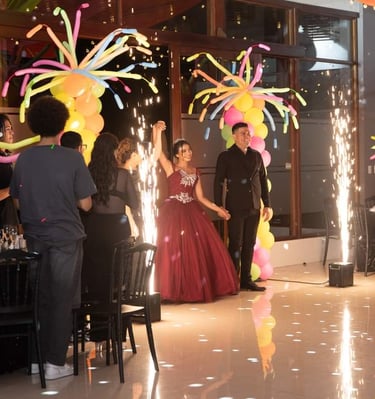 Explosiones de chispas seguras, perfectas para entradas, vals o momentos épicos.