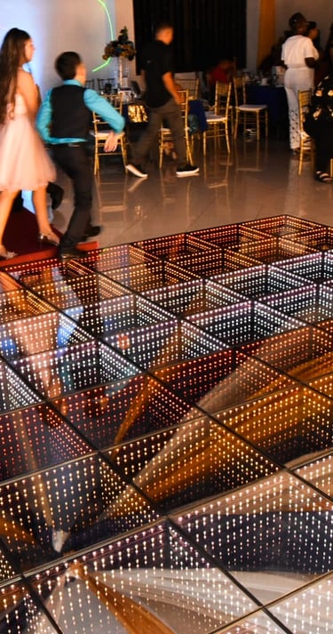 Nuestra exclusiva pista led hará que tus actividades se eleven al siguiente nivel, envolviéndo a todos los presentes en la magia de poder disfrutar de efectos de luces mientras bailan al ritmo de la música de DJ Bonny.